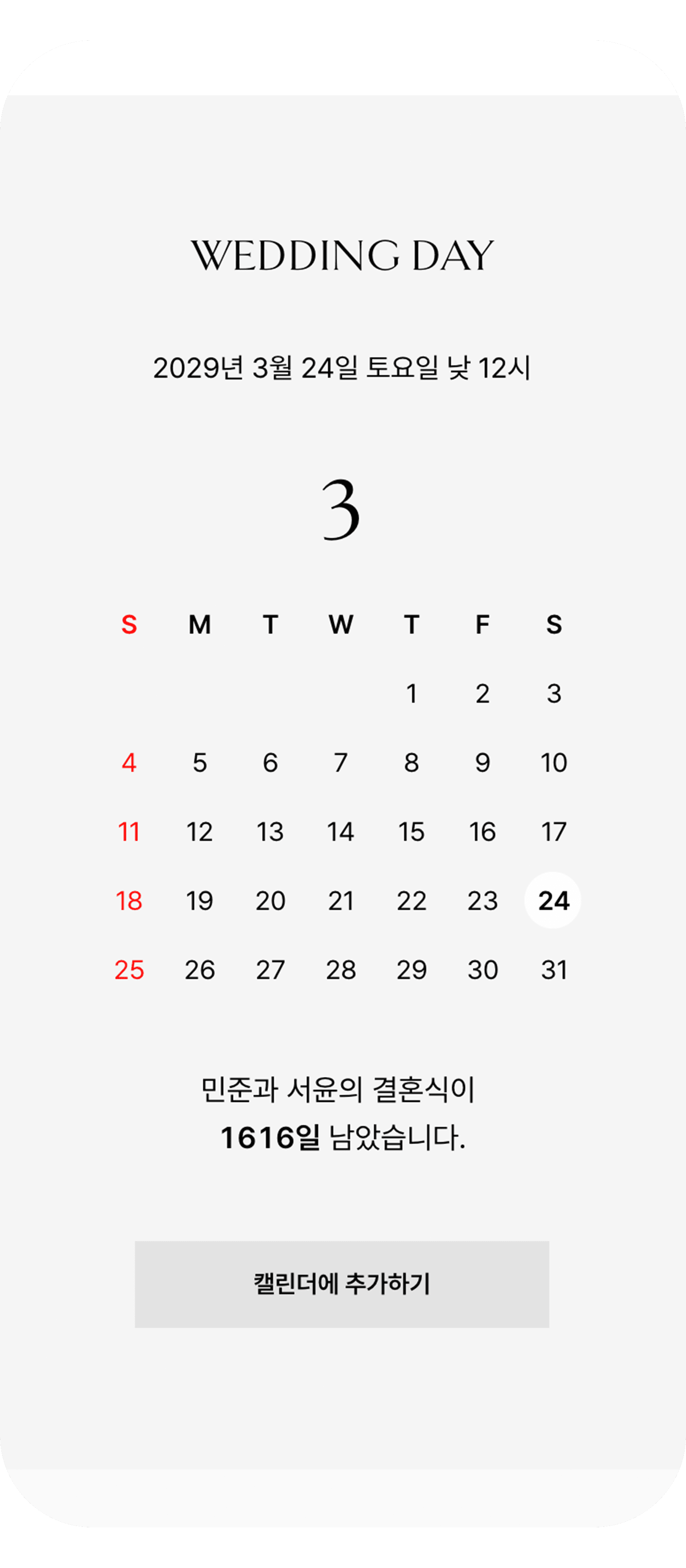 종이 청첩장과 통일된 디자인으로